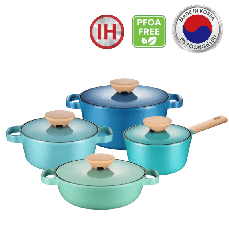 Bộ nồi Ceramic POONGNYUN (PN) Series Bliss Nordic BNPT-4PCS được làm từ nhôm tinh khiết nguyên khối cao cấp cực kỳ bền với công nghệ tráng men hiện đại nhất “Hard Anodized” không tróc men, chống gỉ sét, chống dính, chống ăn mòn, chống bám bẩn và khử mùi không gây ra những chất độc hại cho sức khỏe của người dùng, rất dễ vệ sinh mà không bị ám mùi thực phẩm. Với công nghệ phủ lớp dung nạp muối nổi bật giúp bạn nấu ăn mà không cần dùng nhiều dầu ăn cũng như giúp loại bỏ nhu cầu nấu ăn nhiều muối của Hàn Quốc.