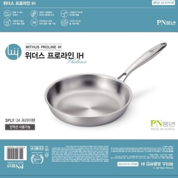 Chảo Inox lồng cạn hiệu PN [POONGNYUN] Series Withus Proline IH WPFP-24(IH) đường kính 24 cm nhập khẩu từ Hàn Quốc thu hút ánh nhìn với thiết kế theo phong cách Châu Âu hài hòa với cảm giác sang trọng, hiện đại và tinh tế tăng độ thẩm mỹ cho nhà bếp cũng như phù hợp với nhu cầu của người sử dụng tiện lợi cho việc chế biến các món ăn khác nhau cho gia đình như chiên, xào, áp chảo, kho, …. Bên cạnh đó, lớp inox không gỉ bên ngoài giữ chảo lâu phai màu và hạn chế bám bẩn.