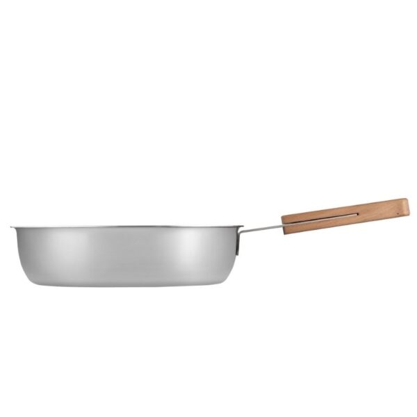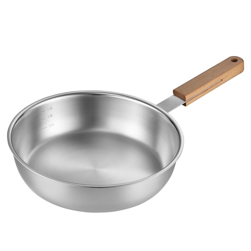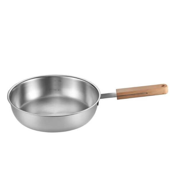 Toàn bộ cấu trúc thép không gỉ cao cấp 3 lớp nguyên khối thân và đáy (SUS430 / ALU1050 / SUS304) dầy 1.5mm không tạp chất cực kỳ bền, chảo Inox lồng sâu hiệu PN [POONGNYUN] Series Withus Woodlite IH WWSP-22(IH) tối đa hóa hiệu suất dẫn và giữ nhiệt làm thức ăn chín đều cực nhanh mà thức ăn không bị cháy khét, tiết kiệm thời gian cũng như chi phí nhiên liệu nấu và giảm sự phá hủy chất dinh dưỡng trong quá trình nấu ăn một cách hiệu quả đặc biệt là các món chiên, xào, áp chảo.