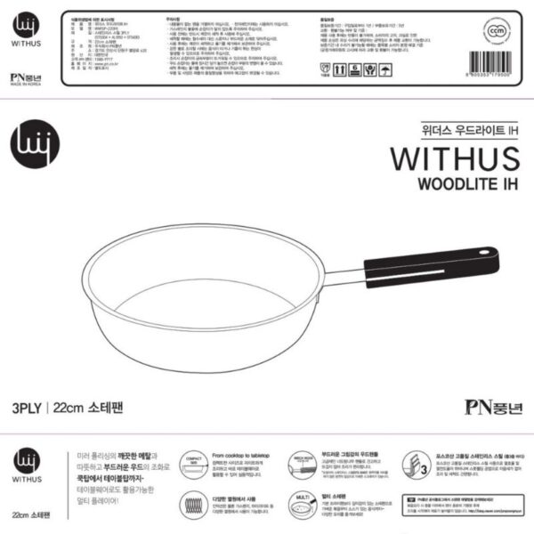 Chảo Inox lồng sâu hiệu PN [POONGNYUN] Series Withus Woodlite IH WWSP-22(IH) được thiết kế phù hợp sử dụng được trên mọi loại bếp, bao gồm cả bếp từ và máy rửa chén. Hơn thế nữa, bằng phương pháp hàn điểm liền mạch không có ốc vít hay đường nối giữa tay cầm và chảo hạn chế thức ăn bám trên thành chảo và dễ dàng vệ sinh.