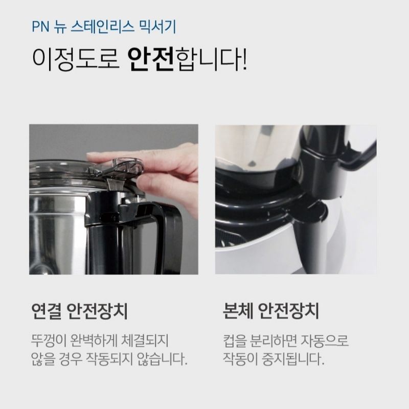 Nhằm đảm bảo sự an toàn sử dụng cho khách hàng, Tập đoàn POONGNYUN (PN) đã tích hợp hệ thống vận hành và khóa an toàn kép sẽ vô hiệu hóa hoạt động khi các bộ phận của máy xay sinh tố không được lắp ráp đúng cách để đảm bảo an toàn và hạn chế các sự cố đáng tiếc xảy ra trong quá trình sử dụng. Ngoài ra, máy xay sinh tố còn tích hợp chế độ cảm ứng nhiệt và quá tải an toàn tự động sẽ vô hiệu hóa hoạt động khi động cơ bị quá nóng lên đến 95ºC và ngăn ngừa sự quá tải của các thành phần nguyên liệu khi xay, nghiền, trộn, băm để ngăn ngừa sốc điện, chống cháy nổ, bảo vệ và duy trì tuổi thọ cho máy xay sinh tố.