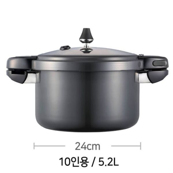 Nồi áp suất nhôm chống dính POONGNYUN BMPC-10(IH) dung tích 5.2 lít nhập khẩu từ Hàn Quốc. Thu hút ánh nhìn với thiết kế theo phong cách Châu Âu hài hòa với cảm giác sang trọng, hiện đại và tinh tế tăng độ thẩm mỹ cho nhà bếp cũng như phù hợp với nhu cầu của người sử dụng tiện lợi cho việc chế biến các món ăn khác nhau cho gia đình như hầm, luộc, kho, hấp, nấu cháo, nấu cơm, nấu cơm trộn, nấu gạo lức… hay chế biến những món yêu cầu độ mềm, cần nấu trong thời gian ngắn [30 – 90 phút] như hầm xương, gân… Bên cạnh đó, với công nghệ điện hóa nhôm không cần lớp phủ “Coating-free Anodizing” không tróc men, chống gỉ sét, chống ăn mòn, chống dính giữ và gia nhiệt nhanh hơn