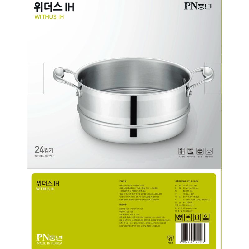 Được nhiều người tiêu dùng yêu mến và lựa chọn, Tập Đoàn POONGNYUN (PN) đến từ Hàn Quốc chuyên sản xuất các sản phẩm nhà bếp, gia dụng nói chung và nồi nhà bếp POONGNYUN (PN) nói riêng là một sự lựa chọn lí tưởng giúp bạn chế biến và thưởng thức các món ăn yêu thích cho gia đình mà vẫn giữ nguyên hương vị cũng như an toàn cho sức khỏe. Xửng hấp Inox POONGNYUN (PN) Series Withus WTPIH-ST 24C được làm bằng chất liệu thép cao cấp SUS304 (18/10) không gỉ sét, độ bền cao với thiết kế sang trọng, hiện đại và an toàn luôn luôn có mặt trong mọi không gian nhà bếp.